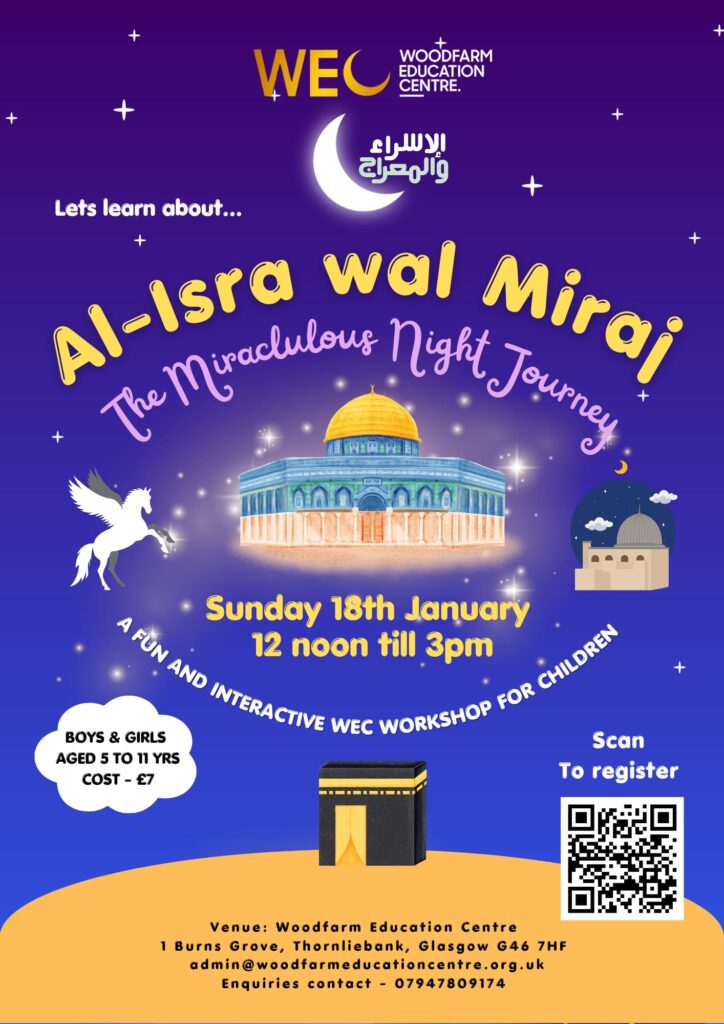 Join us for a special children’s workshop exploring the beautiful and miraculous story of Al-Isra wal Miraj. Through engaging activities, storytelling, and discussion, children will learn about one of the most important events in Islamic history in a fun and age-appropriate way.